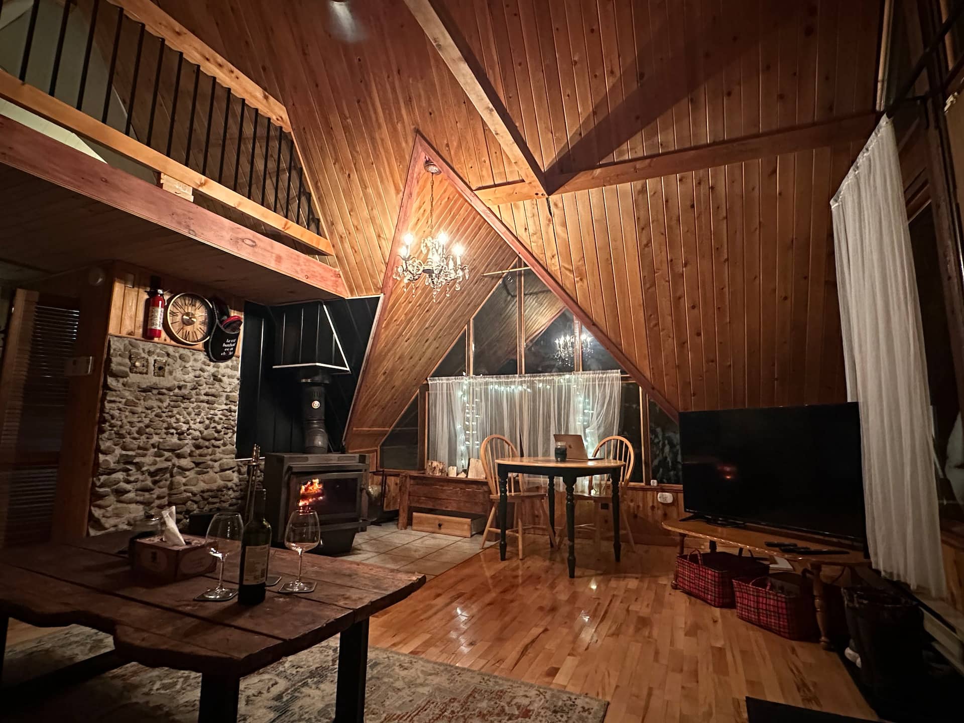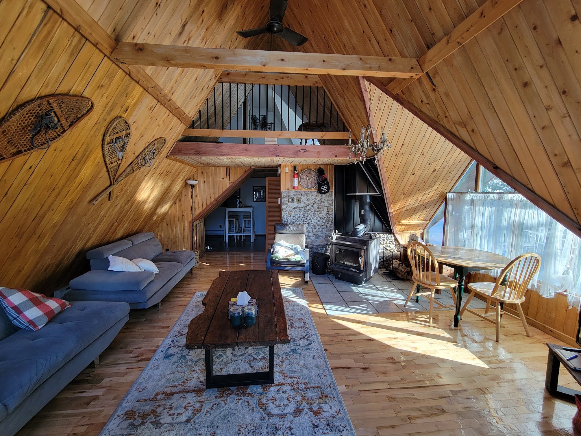 Rien de mieux que le crépitement du poêle à bois sous le plafond cathédral pour une soirée chaleureuse. Apportez votre bois!
