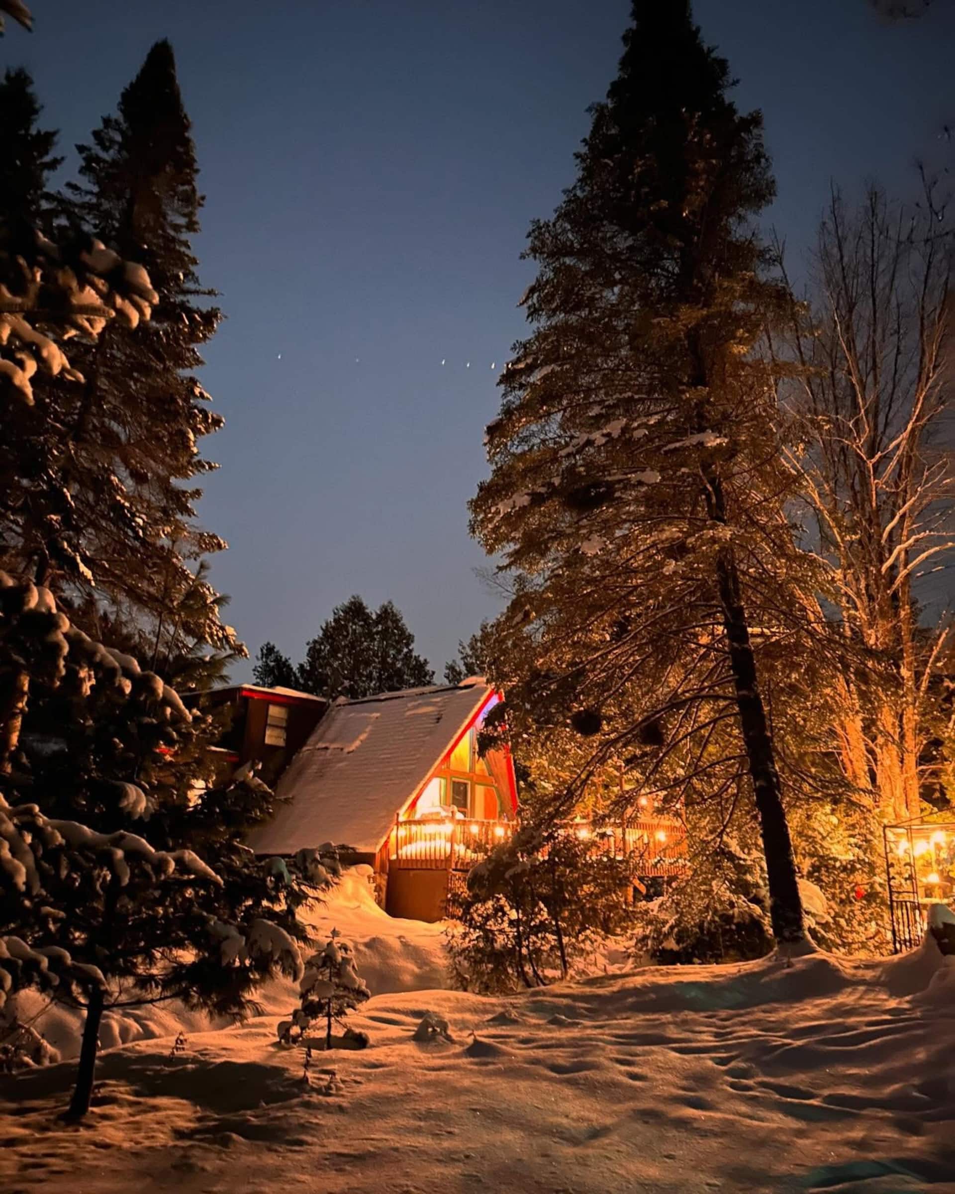 Profitez de notre charmant chalet de style suisse tout en bois avec spa privé 4 saisons, poêle à bois et WiFi rapide. 2 acres de terrain privé sans voisins à l'arrière, bordé par la forêt de la Couronne. Sentiers vers le ruisseau et la cascade directement sur place. Venez profiter de la nature été comme hiver!