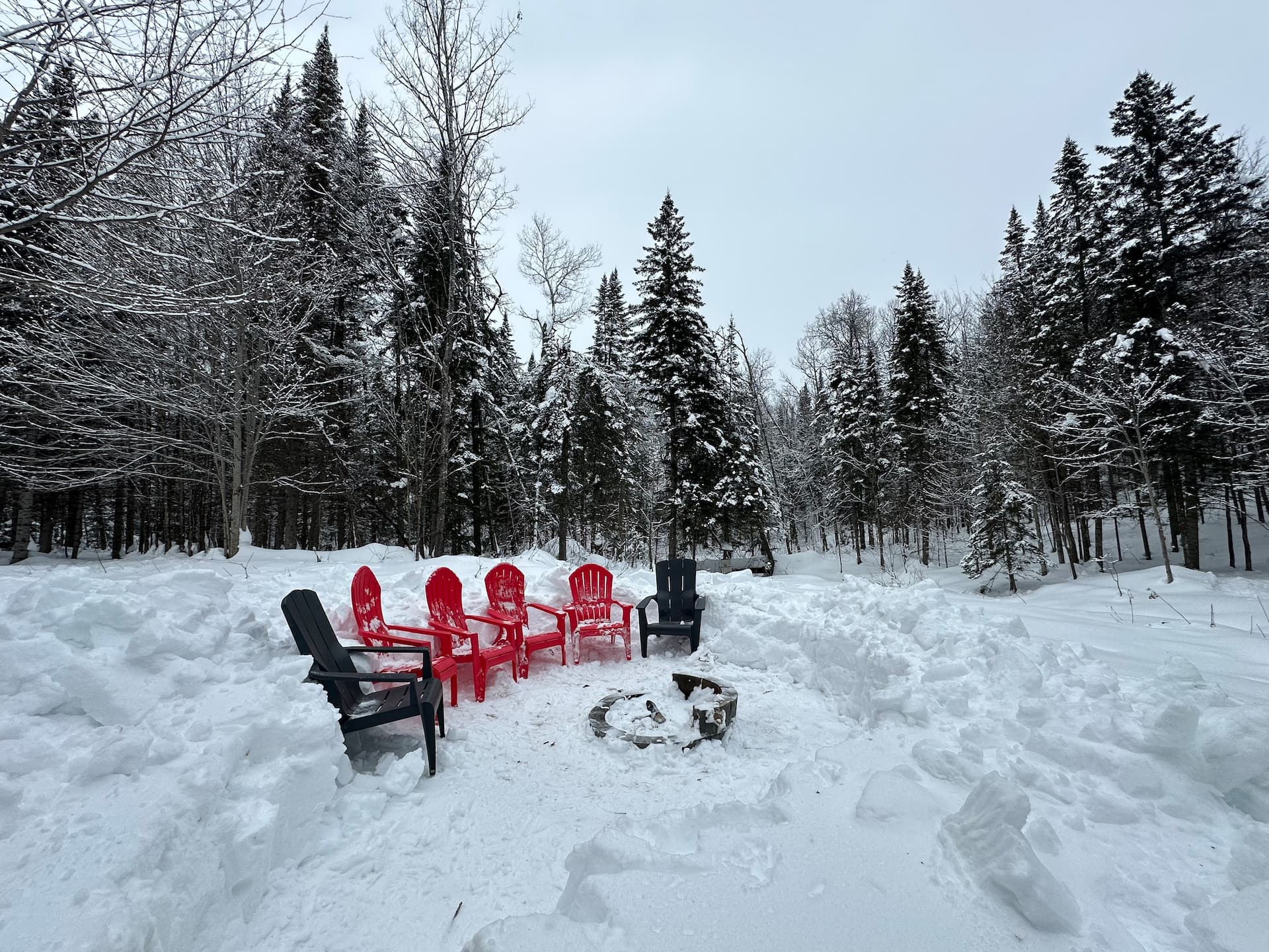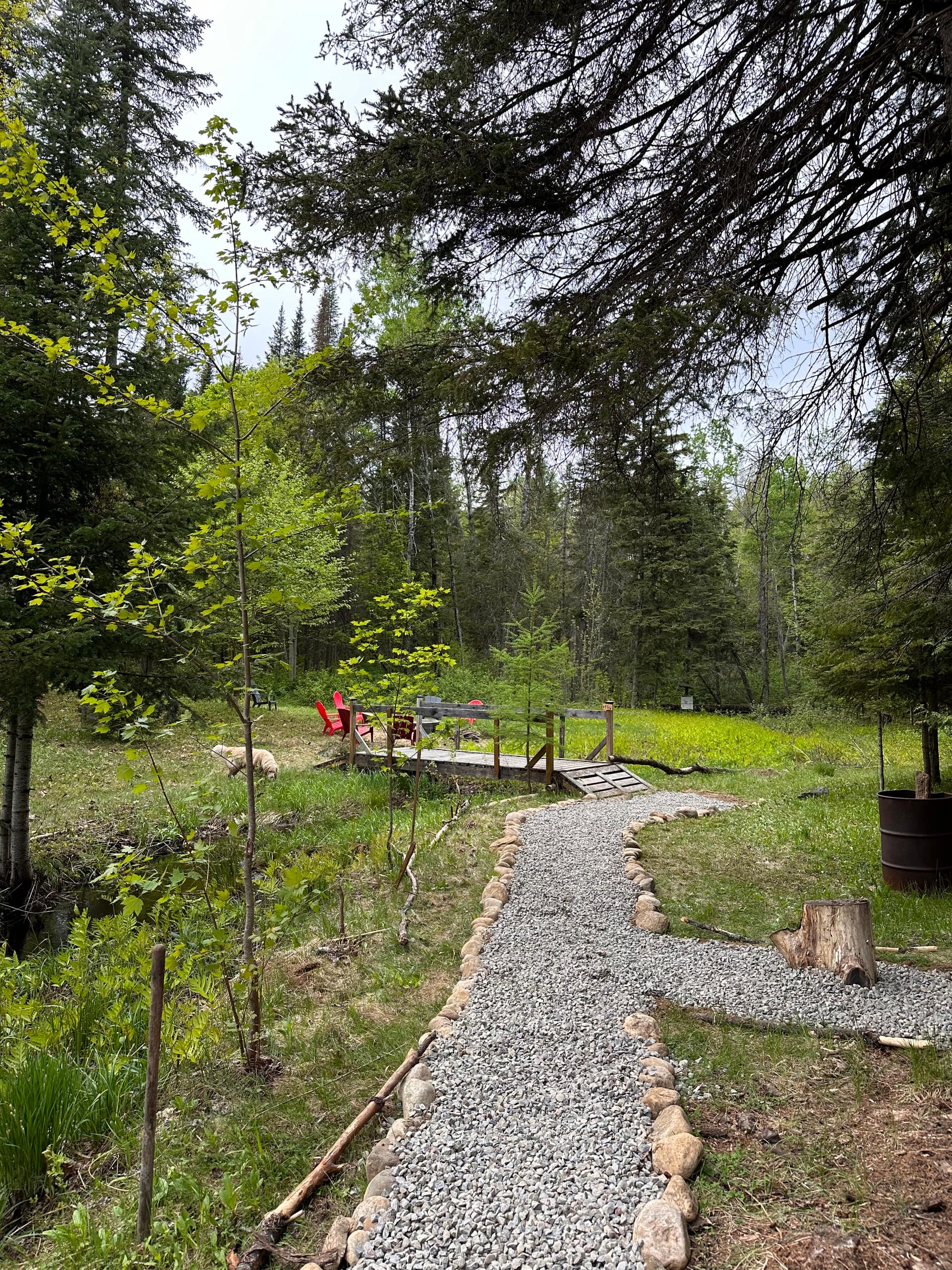 Nos sentiers privés vous mènent à travers la forêt jusqu'à un charmant ruisseau et sa cascade. Le terrain borde les terres de la Couronne, une forêt infinie de conifères parfaite pour l'observation d'oiseaux, la cueillette de champignons ou simplement le silence total. Les plus aventuriers rejoindront le Lac Kaël et le sentier de la Matawinie (7 km aller-retour) directement depuis le chalet par des pistes non balisées (GPS recommandé). Des sentiers officiels du Parc Nature Émélinois sont aussi accessibles à 2 minutes en voiture.